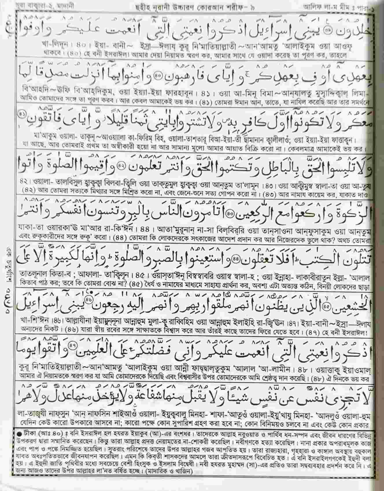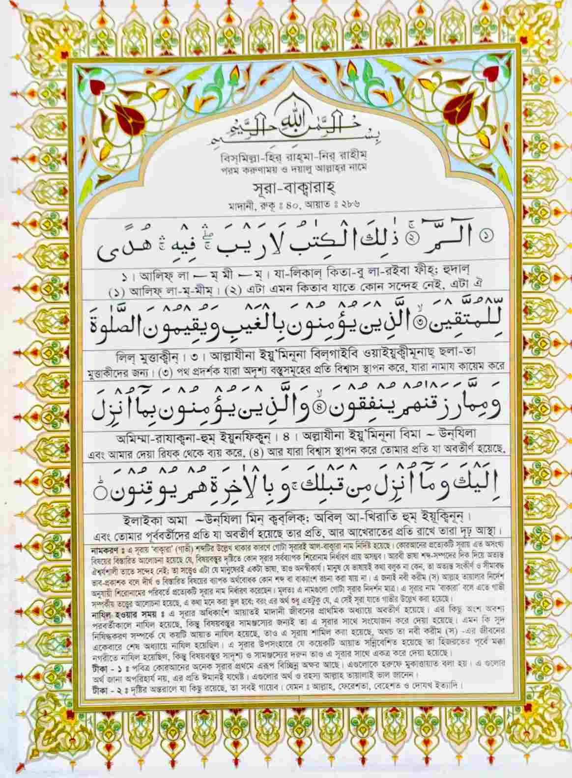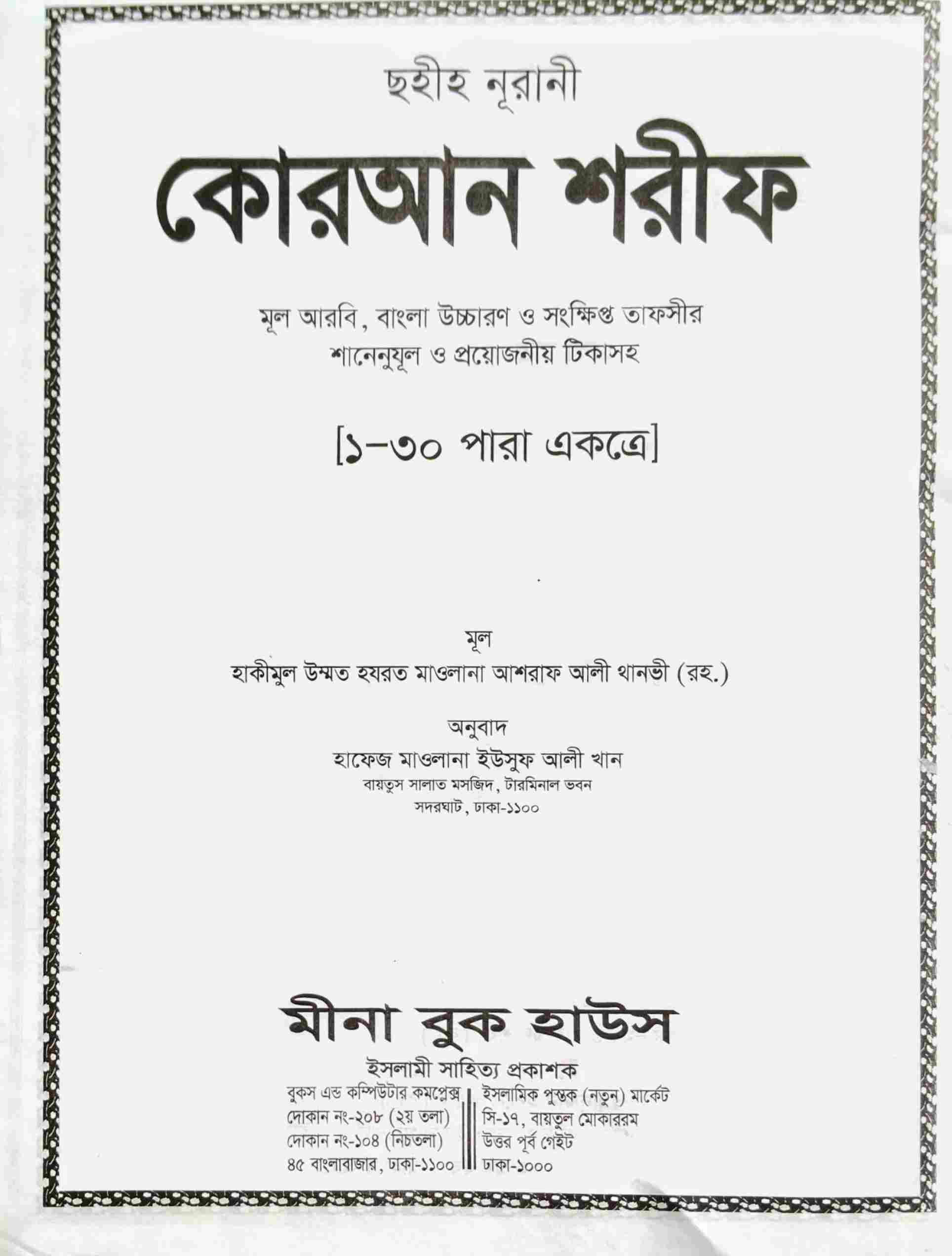 মূল আরবীর বাংলা উচ্চারণ সংক্ষিপ্ত তাফসির, শানেনুযূল ও প্রয়োজনীয় টিকাসহ ত্রিশ পারা একত্রে।