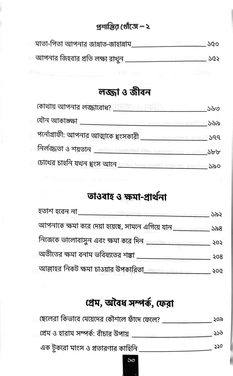 মোট ৭টি প্রধান ক্যাটেগরিতে ৪০টি আর্টিকেলে সমৃদ্ধ বইটি। আধ্যাত্বিক ও যৌক্তিক জ্ঞানের সমন্বেয় প্রতিটি আর্টিকেলে রয়েছে হেদায়াতের বাস্তবজীবনের আলো।