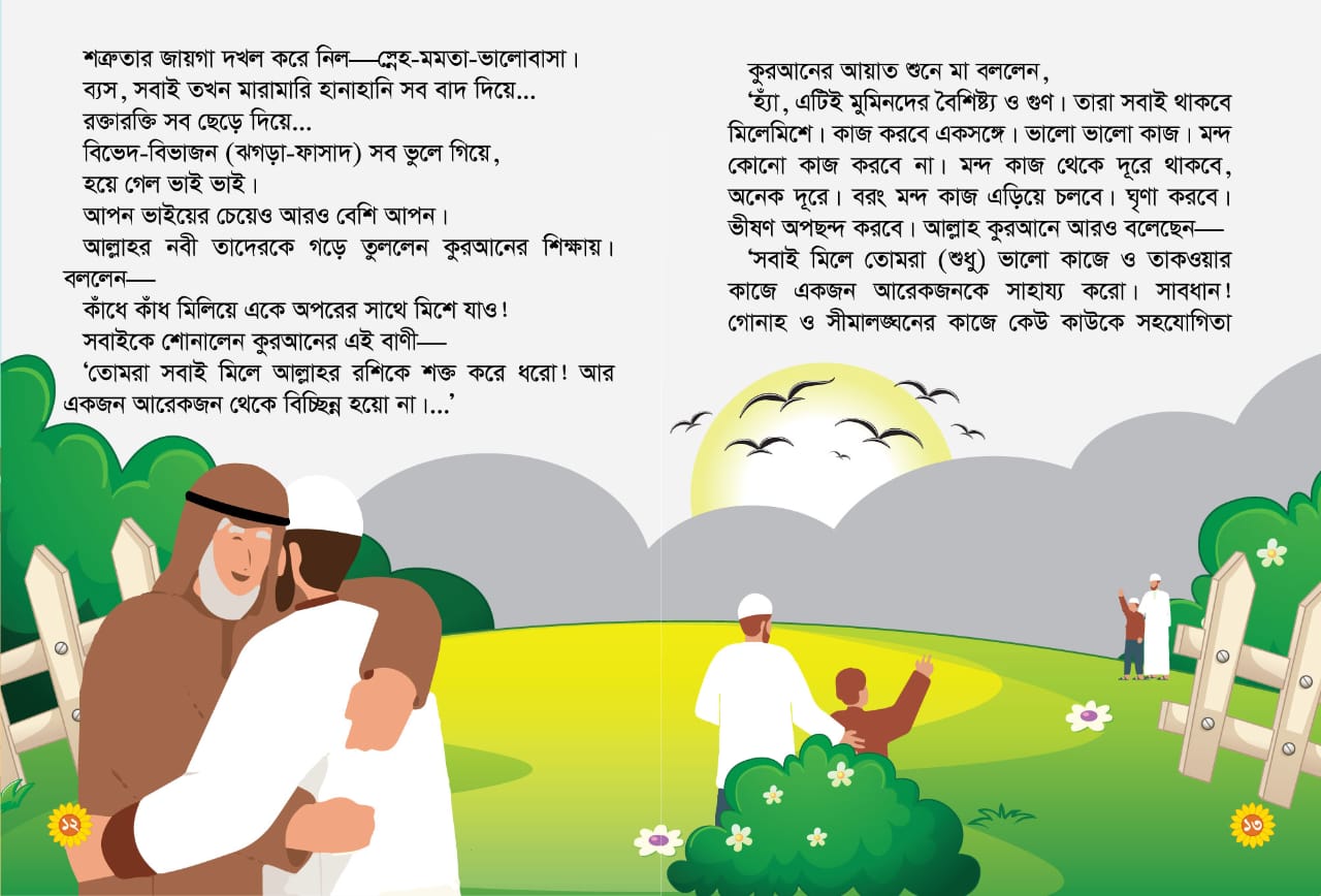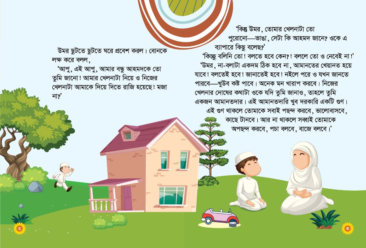 এক. আদর্শ প্রজন্ম গড়তে হলে সুচিন্তিত পরিকল্পনা হাতে নিতে হবে। শিশুমনের গভীরে সুন্দর সুন্দর গুণের—বীজ বুনতে হবে। তারপর কী হবে? তারপর সঠিক পরিচর্যায় সেই বীজগুলোই সুন্দর করে অঙ্কুরিত হবে। সবুজ সবুজ পাতা ছড়াবে। ডালে ডালে শোভা পাবে—থোকা থোকা ফল। মৌ মৌ ফুল। দৃষ্টিকাড়া। মনকাড়া। দুই. বন্ধু, আমাদের আশপাশে কত্ত মানুষের বাস, সবাই কি গুণী? নাহ, সবাই গুণী না! গুণী মানুষের সংখ্যা পৃথিবীতে অনেক কম। আমাদের সোনালি ইতিহাসে লেখা আছে— আগে গুণী মানুষের সংখ্যা অনেক বেশি ছিল। তাই পৃথিবীও তখন খুব সুন্দর ছিল। পৃথিবীর মানুষও অনেক ভালো ও আদর্শবান ছিল। কিন্তু ধীরে ধীরে হলো কি, গুণী মানুষের সংখ্যা কমতে লাগল। কমতে কমতে অনেক কমে গেল। পৃথিবীটাও তখন ভরে উঠতে লাগল— অশান্তিতে। অস্বস্তিতে। অরাজকতায়।বন্ধু, এ অবস্থা থেকে আমরা বেরিয়ে আসতে চাই। এই পৃথিবীকে আবার আমরা সেই সোনালি যুগে ফিরিয়ে নিয়ে যেতে চাই। কিন্তু সে কীভাবে?এই যে, তোমার সামনে দশটি সেরা গুণ নিয়ে দারুণ দারুণ দশটি গল্প সাজিয়েছি আমরা; এ সব গল্পই তোমাকে পথ দেখাবে! আশা করি, এসব গল্প পড়তে শুরু করলে তুমি বদলে যাবে! তোমার চিন্তা বদলে যাবে! অন্ধকার সব দূরে পালিয়ে যাবে! সামনে একে একে উদিত হতে থাকবে আলো আর আলো! আমানতদারির আলো! ওয়াফাদারির আলো! সততার আলো! ইনসাফের আলো! মহানুভবতার আলো! আল্লাহর ওপর ভরসা করার আলো! আরও কত্ত আলো!বন্ধু, এসব আলোর ছোঁয়া পেয়ে— তুমিও নিশ্চিত হেসে উঠবে আলোর হাসি! হয়ে যাবে একজন আলোকিত মানুষ! আদর্শ মানুষ! এসো তাহলে, প্রবেশ করি! গভীরে যাই! গল্পের সাথে একেবারে মিশে যাই! এক এক করে দশটি গল্প শেষে আবিষ্কার করি নিজেকে— আরেক মানুষ হিসেবে! বদলে যাওয়া মানুষ হিসেবে! বিশ্বাস করো, পৃথিবীকে বদলে ফেলতে হলে তোমাকেও বদলে যেতে হবে! আর তা সম্ভব নয়— এসব গুণে গুণী না হলে!