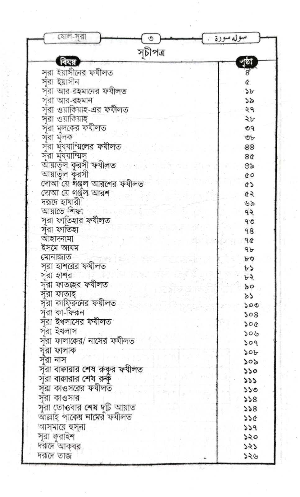 | Title | ষোল সূরা বা মোজমুয়ায়ে ওযায়েফ আরবি বাংলা উচ্চারণ ও অনুবাদ সহ |