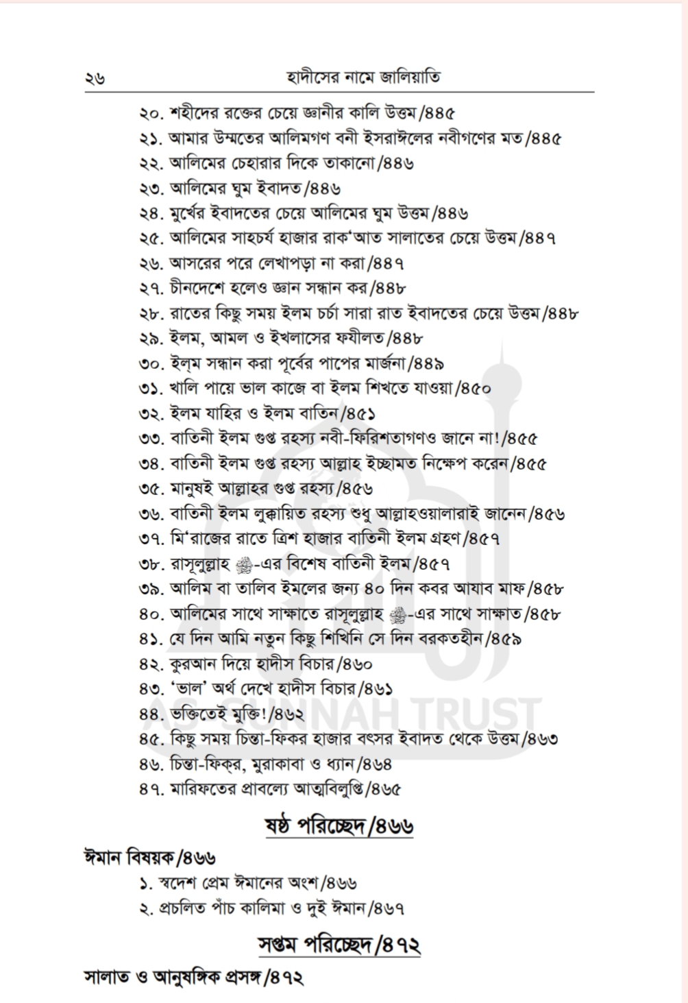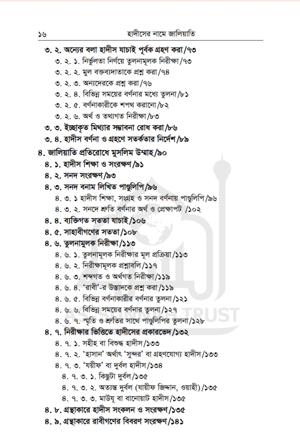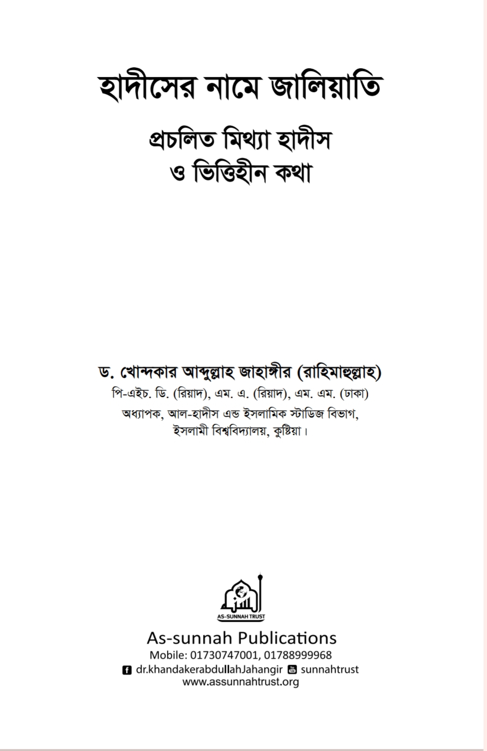 কুরআন কারীমের পরে রাসূলুলাহ (সাঃ)-এর হাদীস ইসলামী জ্ঞানের দ্বিতীয় উৎস ও ইসলামী জীবন ব্যবস্থার দ্বিতীয় ভিত্তি। মুমিনের জীবন আবর্তিত হয় রাসূলুলাহ (সাঃ)-এর হাদীসকে কেন্দ্র করে। হাদীস ছাড়া কুরাআন বুঝা ও বাস্তাবায়ন করাও সম্ভব নয়। হাদীসের প্রতি এই স্বভাবজাত ভালবাসা ও নির্ভরতার সুযোগে অনেক জালিয়াত বিভিন প্রকারের বানোয়াট কথা ‘হাদীস’ নামে সমাজে প্রচার করেছে। সকল যুগে আলিমগণ এসকল জাল ও বানোয়াট কথা নিরীক্ষার মাধ্যমে চিহ্নিত করে মুসলমানদেরকে সচেতন করেছেন।আমাদের দেশে যুগ যুগ ধরে হাদীসের পঠন, পাঠন ও চর্চা থাকলেও সহীহ, যয়ীফ ও বানোয়াট হাদীসের বাছাইয়ের বিষয়ে বিশেষ অবহেলা পরিলক্ষিত হয়। যুগ যুগ ধরে অগণিত বানোয়াট, ভিত্তিহীন ও মিথ্যা কথা হাদীস নামে আমাদের সমাজে প্রচারিত হয়েছে ও হচ্ছে। এতে আমরা রাসূলুলাহ (সাঃ)-এর নামে মিথ্যা বলার কঠিন পাপের মধ্যে নিপতিত হচ্ছি। এছাড়াও দুইভাবে আমরা ক্ষতিগ্রস্থ হচ্ছি। প্রথমত, এ সকল বানোয়াট হাদীস আমাদেরকে সহীহ হাদীসের শিক্ষা, চর্চা ও আমল থেকে বিরত রাখছে। দ্বিতীয়ত, এগুলির উপর আমল করে আমরা আলাহর কাছে পুরস্কারের বদলে শাস্তি পাওনা করে নিচ্ছি।এই পুস্তকের প্রথম পর্বে হাদীসের পরিচয়, হাদীসের নামে মিথ্যার বিধান, ইতিহাস, হাদীসের নির্ভুলতা নির্ণয়ে সাহাবীগণ ও পরবর্তী মুহাদ্দিসগণের নিরীক্ষা পদ্ধতি, নিরীক্ষার ফলাফল, মিথ্যার প্রকারভেদ, মিথ্যাবাদী রাবীগণের শ্রেণীভাগ, জাল হাদীস নির্ধারণের পদ্ধতি ইত্যাদি বিষয়ে বিস্তারিত আলোচনা করার চেষ্টা করা হয়েছে। আশা করি এই আলোচনা পাঠকের মনের দ্বিধা ও অস্পষ্টতা দূর করবে এবং হাদীসের নির্ভুলতা রক্ষায় মুসলিম উম্মাহর অলৌকিক বৈশিষ্ট্য পাঠকের কাছে স্পষ্ট হবে।দ্বিতীয় পর্বে আমাদের সমাজে প্রচলিত বিভিনড়ব ভিত্তিহীন, বানোয়াট ও জাল হাদীসের বিষয়ভিত্তিক আলোচনা করা হয়েছে। উল্লেখ্য যে, জাল হাদীসের বিষয়ে লেখকের মূলত নিজের কোনো মতামত উলেখ করা হয়নি। দ্বিতীয় হিজরীর তাবেয়ী ও তাবে- তাবেয়ী ইমামগণ থেকে শুরু করে পরবর্তী যুগের অগণিত মুহাদ্দিস রাসূলুলাহ (সাঃ)-এর নামে প্রচারিত সকল হাদীস সংকলন করে, গভীর নিরীক্ষা ও যাচাইয়ের মাধ্যমে সে সকল হাদীস ও রাবীদের বিষয়ে যে সকল মতামত প্রদান করেছেন লেখক মূলত সেগুলির উপরেই নির্ভর করেছেন এবং তাঁদের মতামতই উল্লেখ্য করা হয়েছে।