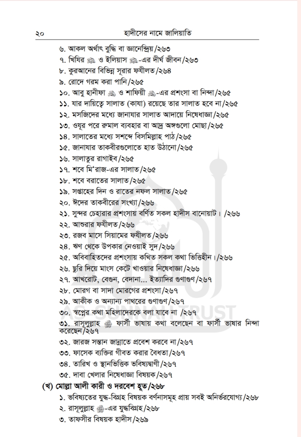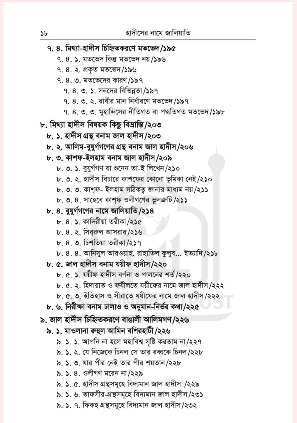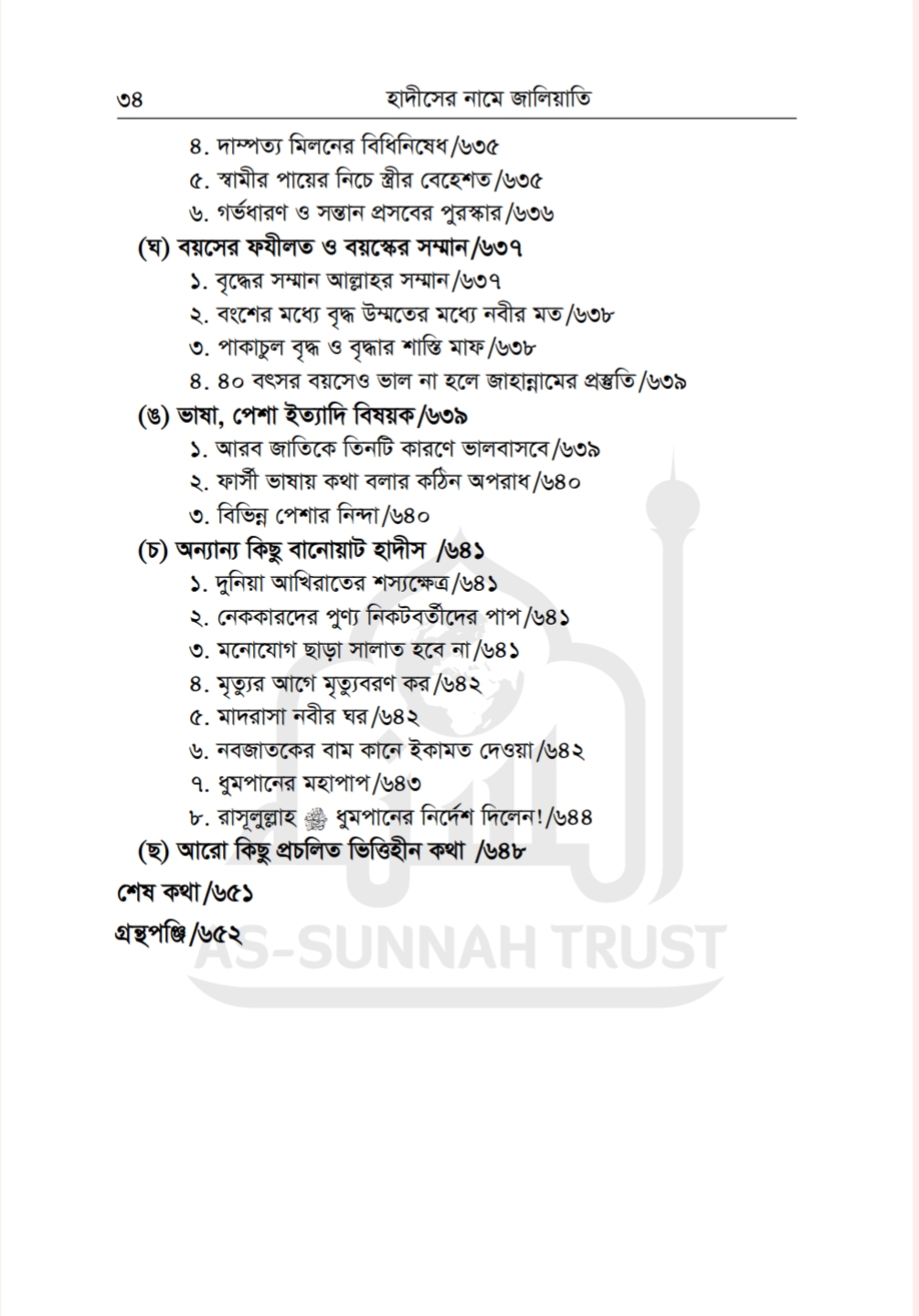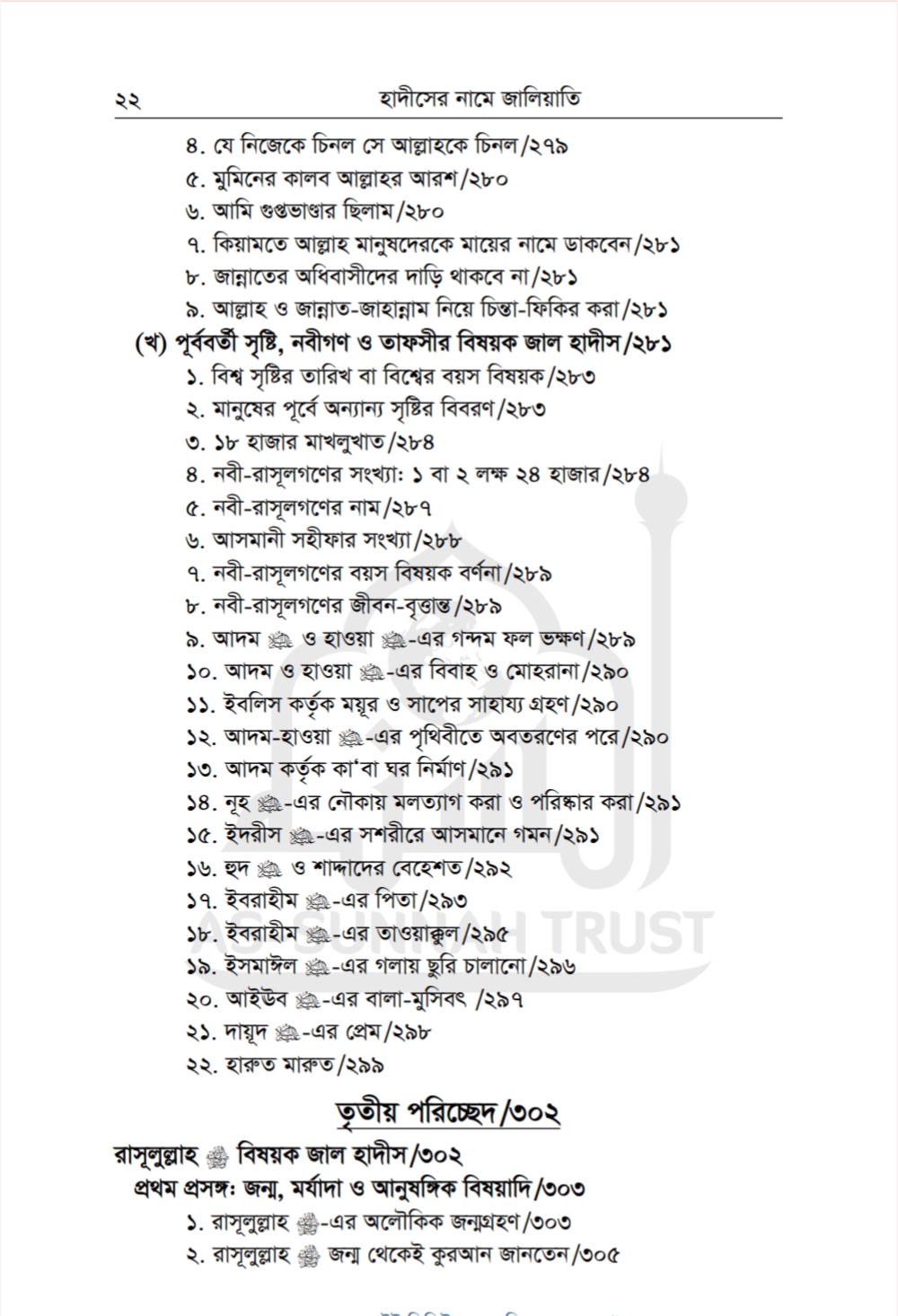 কুরআন কারীমের পরে রাসূলুলাহ (সাঃ)-এর হাদীস ইসলামী জ্ঞানের দ্বিতীয় উৎস ও ইসলামী জীবন ব্যবস্থার দ্বিতীয় ভিত্তি। মুমিনের জীবন আবর্তিত হয় রাসূলুলাহ (সাঃ)-এর হাদীসকে কেন্দ্র করে। হাদীস ছাড়া কুরাআন বুঝা ও বাস্তাবায়ন করাও সম্ভব নয়। হাদীসের প্রতি এই স্বভাবজাত ভালবাসা ও নির্ভরতার সুযোগে অনেক জালিয়াত বিভিন প্রকারের বানোয়াট কথা ‘হাদীস’ নামে সমাজে প্রচার করেছে। সকল যুগে আলিমগণ এসকল জাল ও বানোয়াট কথা নিরীক্ষার মাধ্যমে চিহ্নিত করে মুসলমানদেরকে সচেতন করেছেন।আমাদের দেশে যুগ যুগ ধরে হাদীসের পঠন, পাঠন ও চর্চা থাকলেও সহীহ, যয়ীফ ও বানোয়াট হাদীসের বাছাইয়ের বিষয়ে বিশেষ অবহেলা পরিলক্ষিত হয়। যুগ যুগ ধরে অগণিত বানোয়াট, ভিত্তিহীন ও মিথ্যা কথা হাদীস নামে আমাদের সমাজে প্রচারিত হয়েছে ও হচ্ছে। এতে আমরা রাসূলুলাহ (সাঃ)-এর নামে মিথ্যা বলার কঠিন পাপের মধ্যে নিপতিত হচ্ছি। এছাড়াও দুইভাবে আমরা ক্ষতিগ্রস্থ হচ্ছি। প্রথমত, এ সকল বানোয়াট হাদীস আমাদেরকে সহীহ হাদীসের শিক্ষা, চর্চা ও আমল থেকে বিরত রাখছে। দ্বিতীয়ত, এগুলির উপর আমল করে আমরা আলাহর কাছে পুরস্কারের বদলে শাস্তি পাওনা করে নিচ্ছি।এই পুস্তকের প্রথম পর্বে হাদীসের পরিচয়, হাদীসের নামে মিথ্যার বিধান, ইতিহাস, হাদীসের নির্ভুলতা নির্ণয়ে সাহাবীগণ ও পরবর্তী মুহাদ্দিসগণের নিরীক্ষা পদ্ধতি, নিরীক্ষার ফলাফল, মিথ্যার প্রকারভেদ, মিথ্যাবাদী রাবীগণের শ্রেণীভাগ, জাল হাদীস নির্ধারণের পদ্ধতি ইত্যাদি বিষয়ে বিস্তারিত আলোচনা করার চেষ্টা করা হয়েছে। আশা করি এই আলোচনা পাঠকের মনের দ্বিধা ও অস্পষ্টতা দূর করবে এবং হাদীসের নির্ভুলতা রক্ষায় মুসলিম উম্মাহর অলৌকিক বৈশিষ্ট্য পাঠকের কাছে স্পষ্ট হবে।দ্বিতীয় পর্বে আমাদের সমাজে প্রচলিত বিভিনড়ব ভিত্তিহীন, বানোয়াট ও জাল হাদীসের বিষয়ভিত্তিক আলোচনা করা হয়েছে। উল্লেখ্য যে, জাল হাদীসের বিষয়ে লেখকের মূলত নিজের কোনো মতামত উলেখ করা হয়নি। দ্বিতীয় হিজরীর তাবেয়ী ও তাবে- তাবেয়ী ইমামগণ থেকে শুরু করে পরবর্তী যুগের অগণিত মুহাদ্দিস রাসূলুলাহ (সাঃ)-এর নামে প্রচারিত সকল হাদীস সংকলন করে, গভীর নিরীক্ষা ও যাচাইয়ের মাধ্যমে সে সকল হাদীস ও রাবীদের বিষয়ে যে সকল মতামত প্রদান করেছেন লেখক মূলত সেগুলির উপরেই নির্ভর করেছেন এবং তাঁদের মতামতই উল্লেখ্য করা হয়েছে।