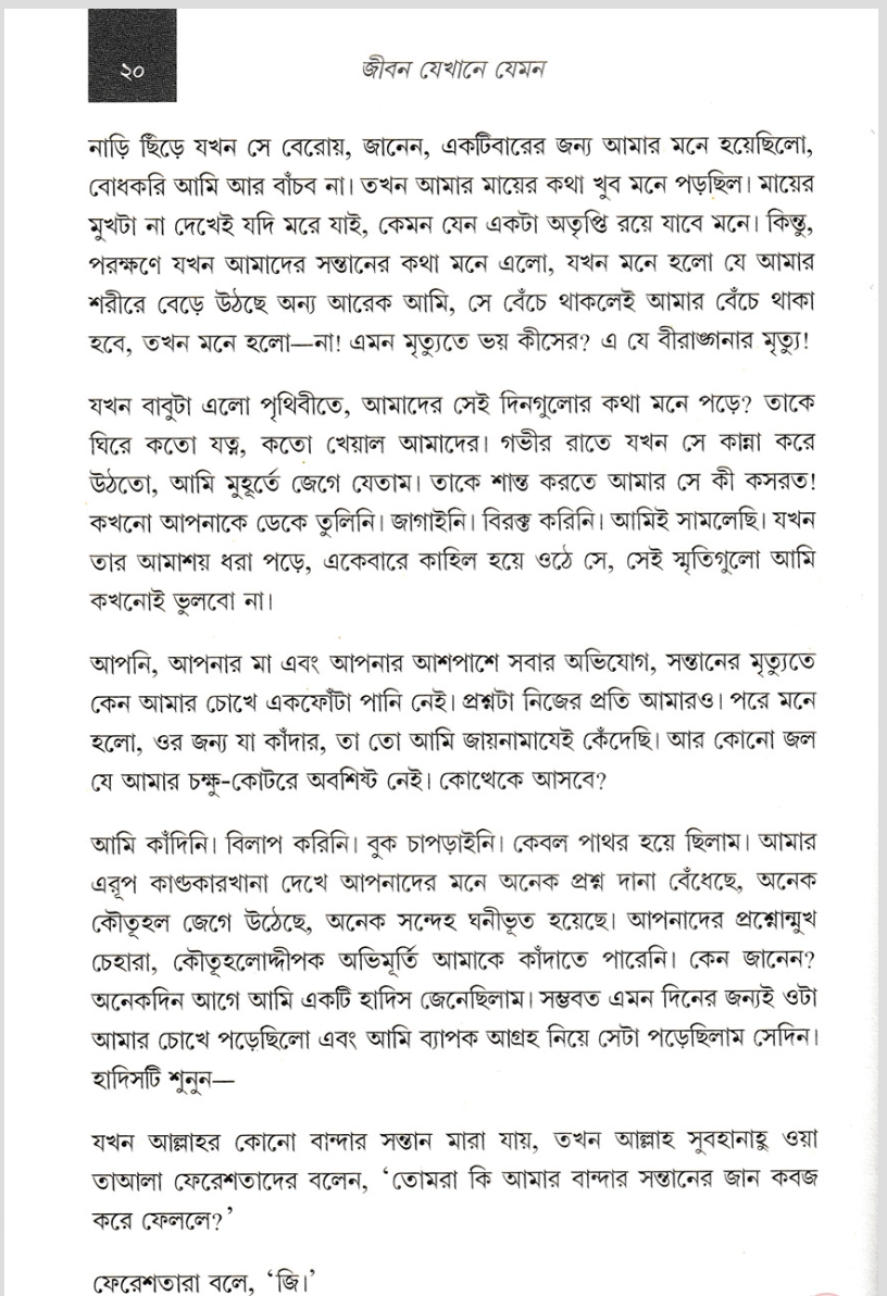 জীবন যেখানে যেমন নিরেট গল্পের একটি বই। তবে কেবল গল্পের বই বলে একে মূল্যায়নের সুযােগ নেই। গল্পের ফাঁকে ফাঁকে লেখক তার পাঠকদের জন্য রেখে গিয়েছেন চিন্তার কিছু খােরাক। পাঠকের ভাবুক মন যদি সেগুলােয় নিবিষ্ট হয়, আমরা আশা করতে পারি, গল্পের পাশাপাশি তারা জীবনের কিছু উপকারী পাঠ কুড়িয়ে নিতে সক্ষম হবে। লেখক আরিফ আজাদ তার লেখনীশক্তির মুন্সিয়ানায়। গল্পগুলােকে প্রাণবন্ত করে তুলেছেন। এ কারণে প্রতিটি গল্পই হয়ে উঠেছে সুখপাঠের এক বিশাল আধার। এ বইতে পাঠকসমাজ নতুন এক আরিফ আজাদকে আবিষ্কার করবেন বলেই আমাদের বিশ্বাস।
