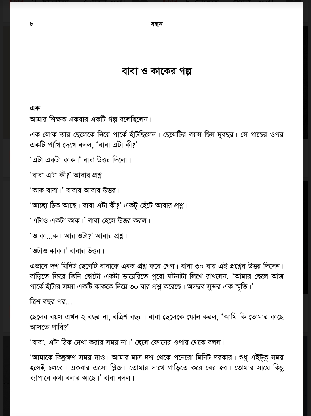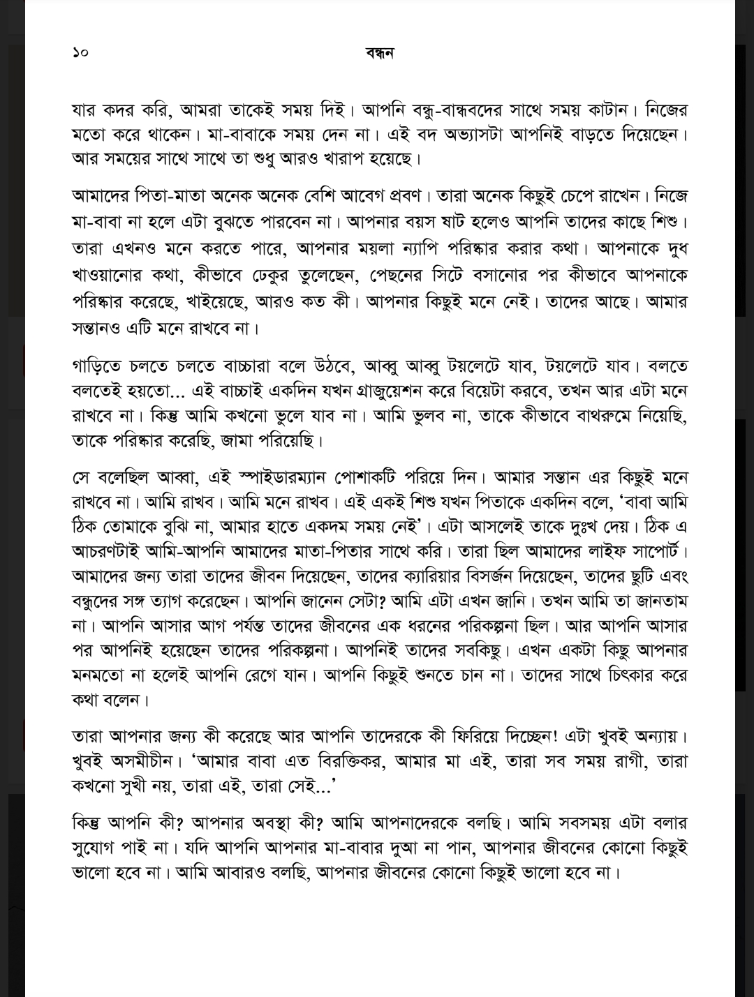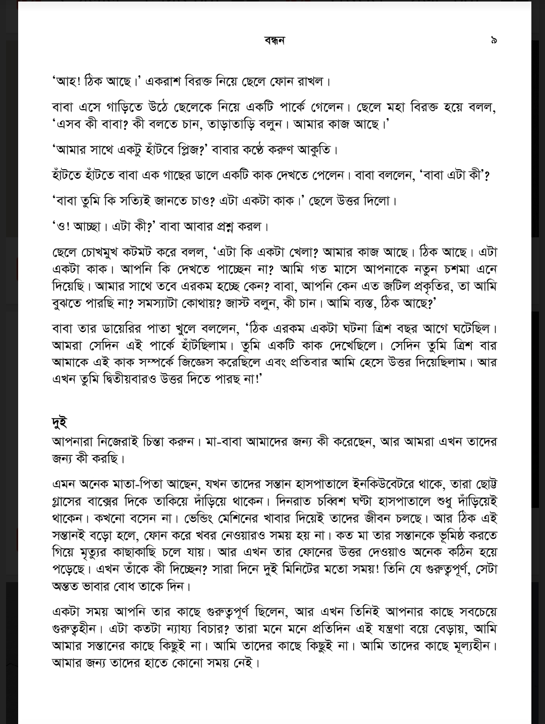 "বন্ধন" বইয়ের ভিতরের সংক্ষিপ্ত লেখা: